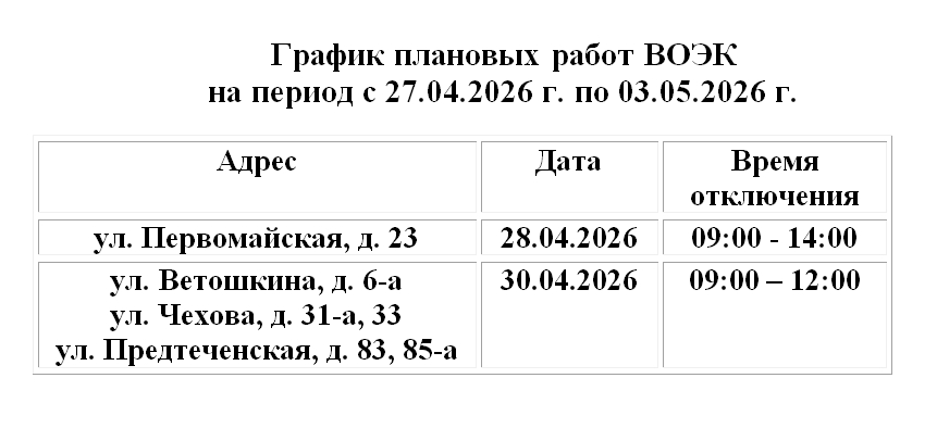 График плановых отключений электроэнергии