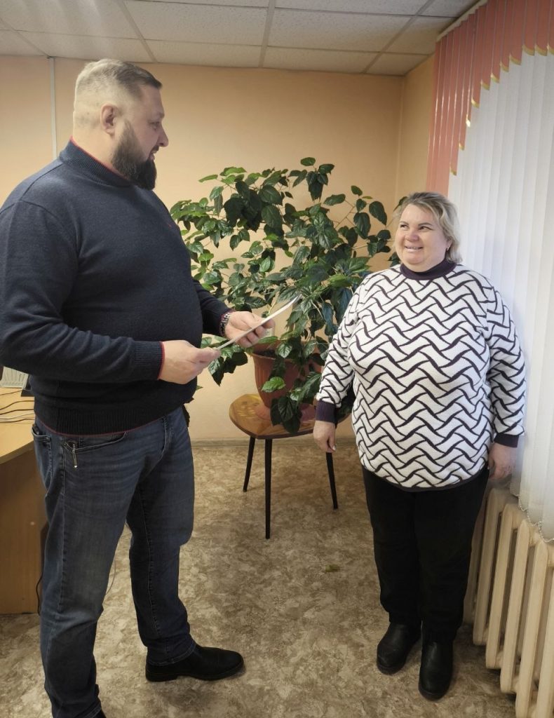 В пятницу начальник ПТО, Александр Михайлович Шухов, вручил Грамоту за участие – Инне Алексеевне Варфоломеевой, старшей по 4 подъезду МКД по ул. Архангельской, 19.