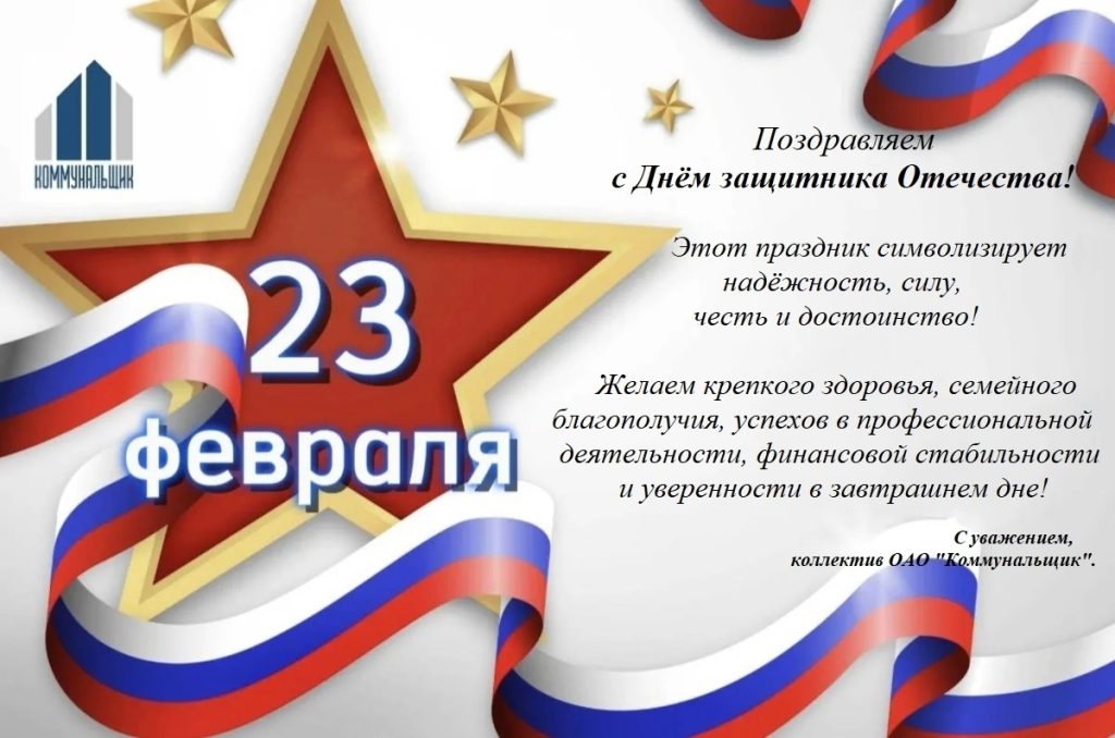 УК “Коммунальщик” поздравляет всех мужчин — дедушек, отцов, мужей, братьев, сыновей — с наступающим Днем защитника Отечества!